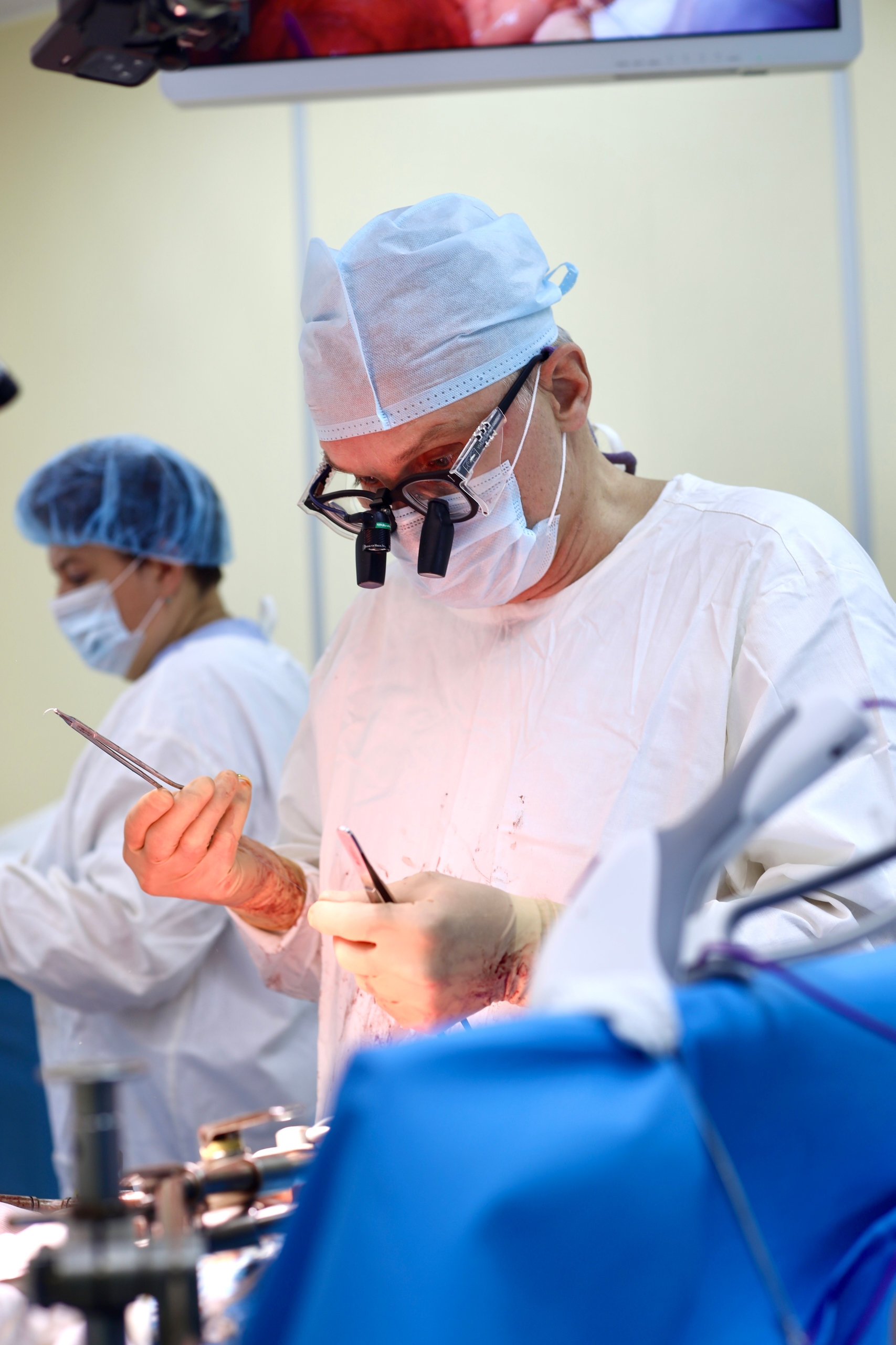 In the first stage of treatment, specialists began combating the neoplasm in the colon by removing the affected section of the intestine along with the regional lymph nodes. The surgery was performed using video endoscopic technologies, which ensured a faster recovery for the patient. Subsequently, Sergey underwent a course of medical rehabilitation that included therapeutic exercises, sessions with a psychologist, and a set of physiotherapeutic procedures. All of this was necessary for complete recovery and preparation for the upcoming complex surgery.