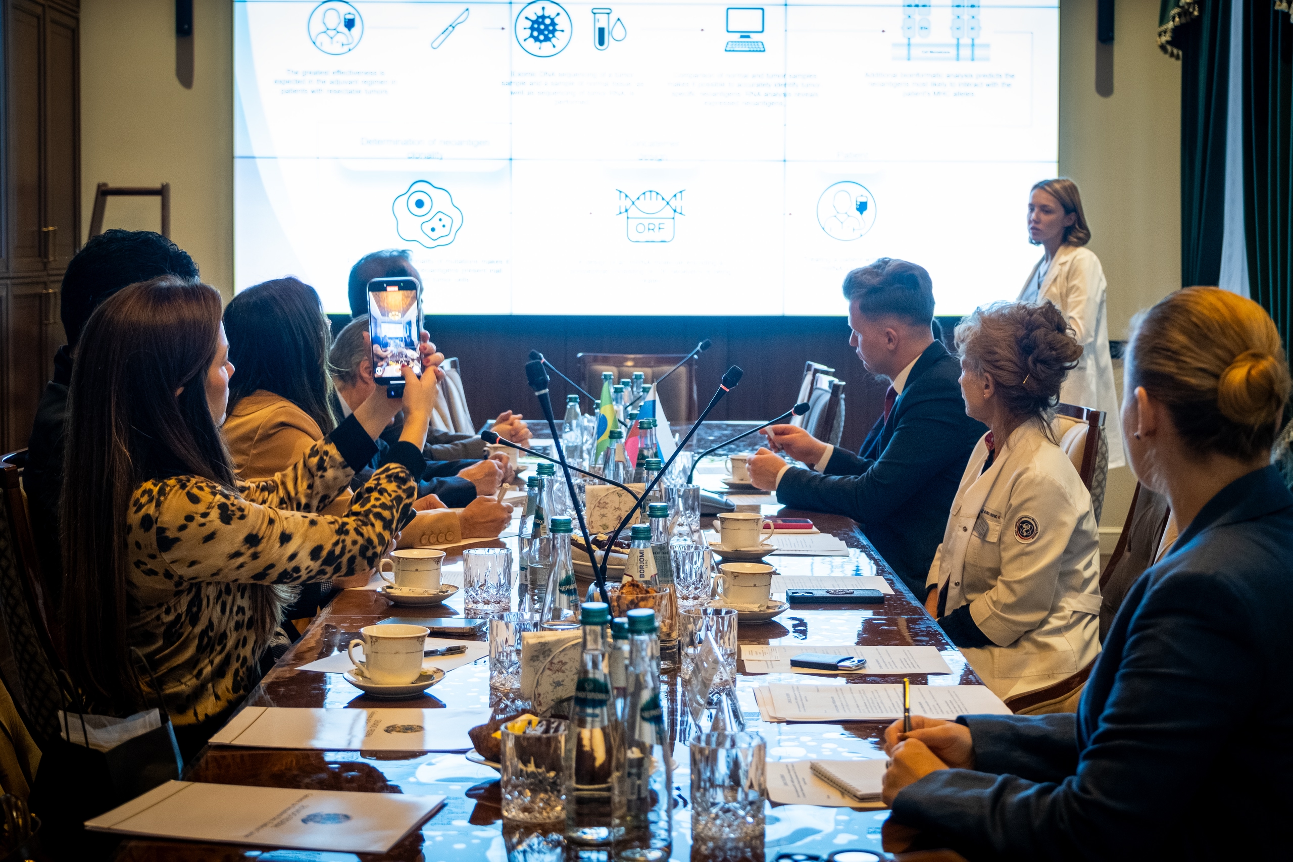 В ходе визита гостям была представлена презентация о работе НМИЦ радиологии, его научных направлениях и ключевых подразделениях. Делегация посетила лабораторный комплекс GMP, где в перспективе будут производиться отечественные биомедицинские препараты, включая клеточные технологии CAR-T. Сенатор Калдас с большим интересом ознакомилась с деятельностью клинических подразделений Центра и подчеркнула значимость опыта российской онкологической службы в развитии персонализированной медицины.