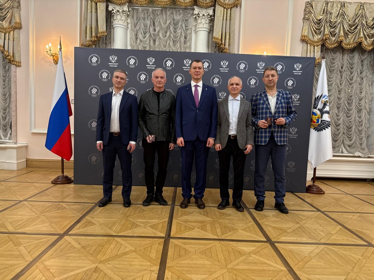 В канун Нового года и в связи с 10-летним юбилеем Ассоциации врачей — любителей футбола заведующий отделением урологии НИИ урологии им. Н.А. Лопаткина — филиала НМИЦ радиологии Минздрава России, к.м.н. Сергей Маслов и руководитель группы реконструктивной урологии к.м.н. Николай Поляков получили награду из рук министра спорта России Михаила Дегтярева.