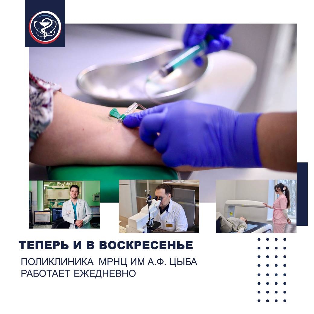 ПОЛИКЛИНИКА МРНЦ ИМ А.Ф. ЦЫБА ТЕПЕРЬ РАБОТАЕТ И ПО ВОСКРЕСЕНЬЯМ