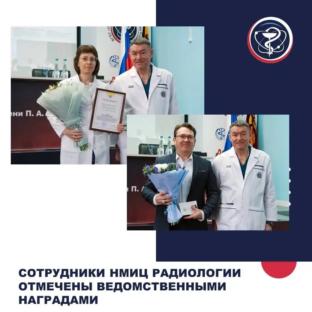 Наградным знаком «Отличник здравоохранения» отмечены Самира Запирова, старший научный сотрудник; Михаил Мазо, старший научный сотрудник, и Юрий Самсонов, заведующий отделом. Также Почетной грамотой НМИЦ радиологии Минздрава России награжден Дмитрий Давыдов, заведующий отделом МНИОИ им. П.А. Герцена.