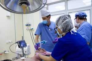 В рамках этой программы в отделение анестезиологии-реанимации установлено новое оборудование для обеспечения проходимости дыхательных путей фирмы. Видеоларингоскоп позволяет безопасно для пациента и комфортно для врача проводить интубацию трахеи при наличии анатомических особенностей, затрудняющих визуализацию гортани. Видеобронхоскоп дает возможность с высокой степенью надежности позиционировать интубационную трубку в трахее при однолёгочной вентиляции. Ранее решение подобных задач выполнялось только под визуальным и аускультативным контролем, что не обеспечивало полной уверенности в успехе процедуры. Наличие подобного оборудования позволяет до 100% повысить вероятность успешной интубации трахеи у пациентов с прогнозируемыми трудностями при поддержании проходимости дыхательных путей и при операциях на легких.